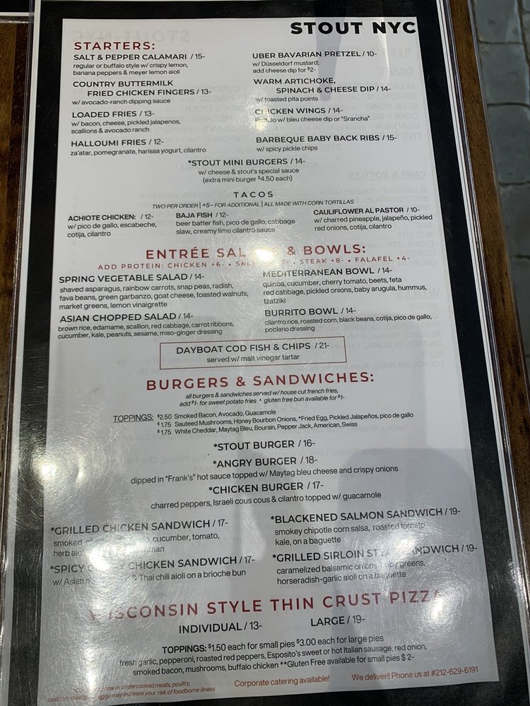 Introducing the Menu at Stout NYC